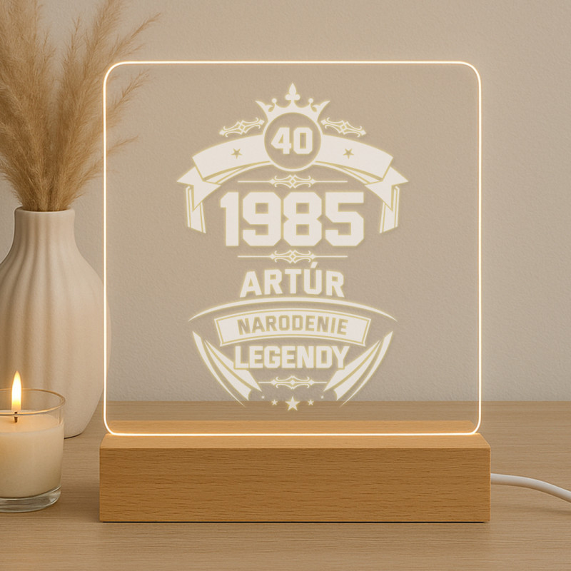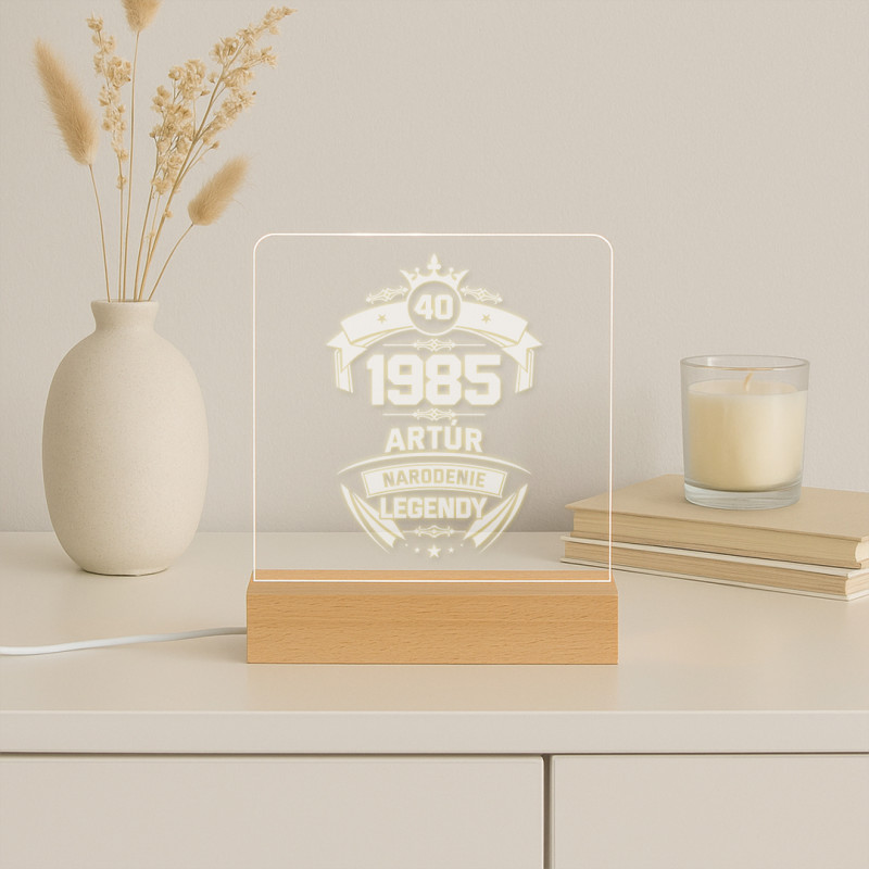 Minimalistyczna lampa z podświetlanym pleksiglasem na eleganckiej drewnianej podstawie. Idealna jako dekoracja wnętrz, spersonalizowany prezent lub oświetlenie nastrojowe. Zasilana kablem USB, łączy nowoczesny styl z funkcjonalnością.