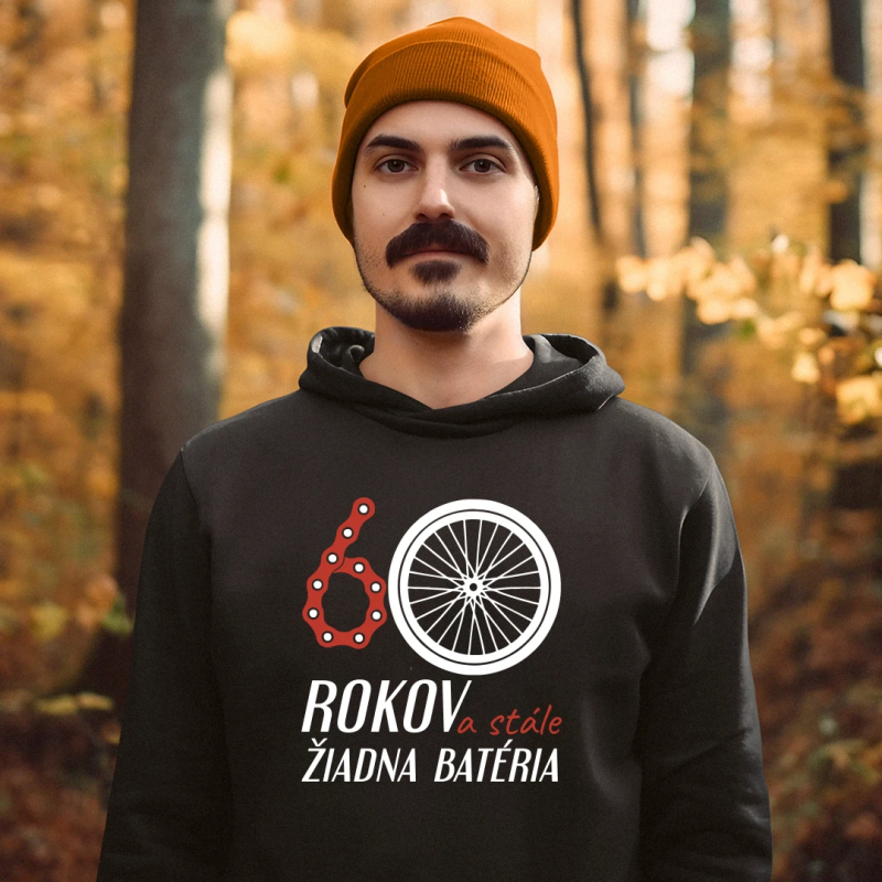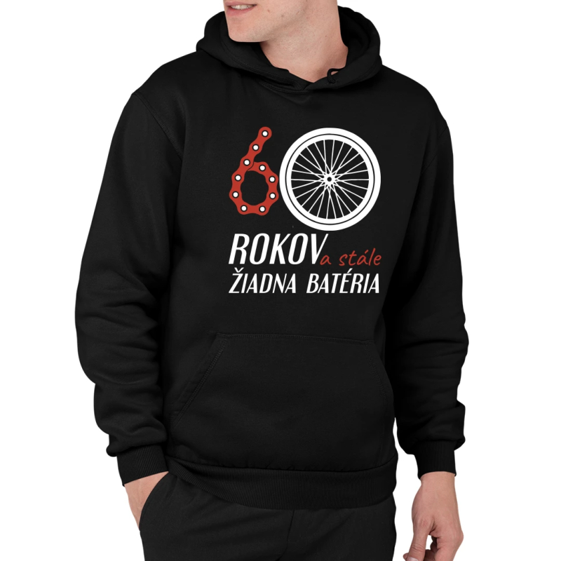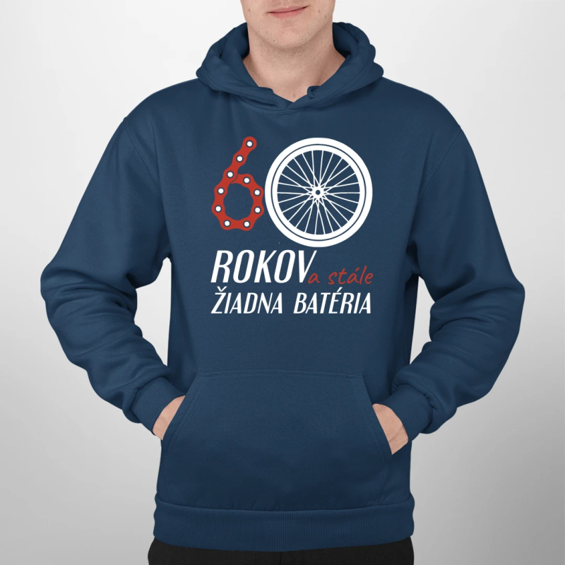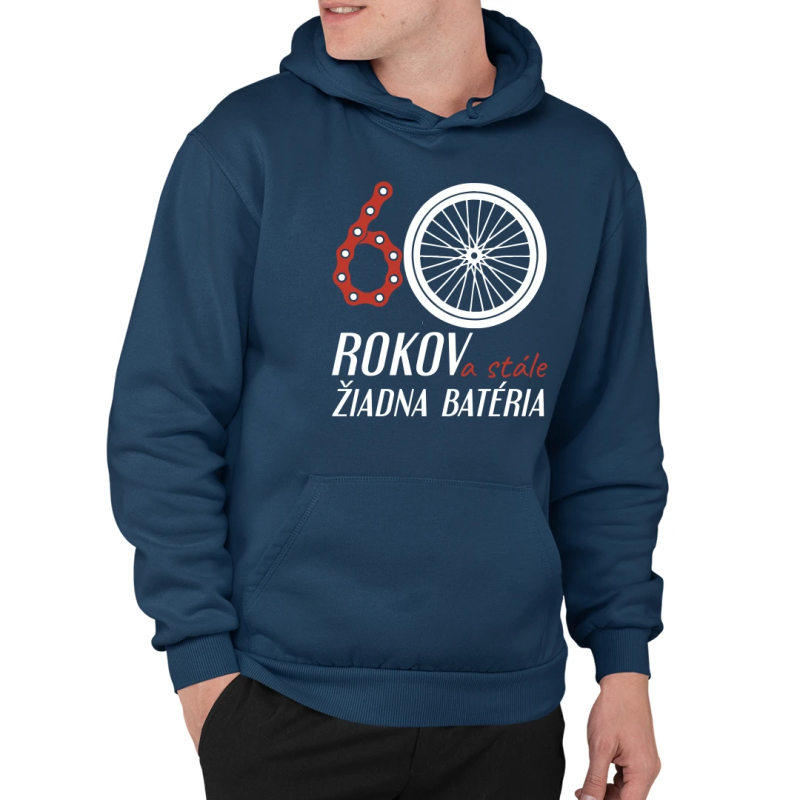 60 rokov a stále žiadna batéria  - pánska mikina s potlačou Zväčšiť