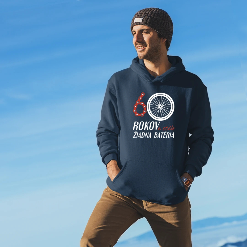60 rokov a stále žiadna batéria - pánska mikina s potlačou
