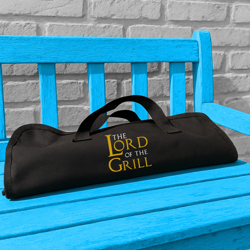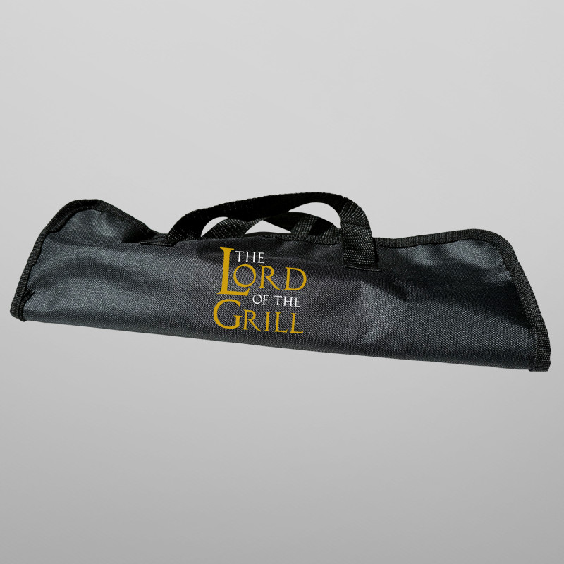 Trojdielna sada náradia na gril v elegantnom puzdre s potlačou. Ideálny tip na darček pre každého milovníka grilovania. V sade nájdete vidličku, obracačku a kliešte, vyrobené z odolnej nehrdzavejúcej ocele, v čiernom nylonovom puzdre s rozmermi 410×270 mm.